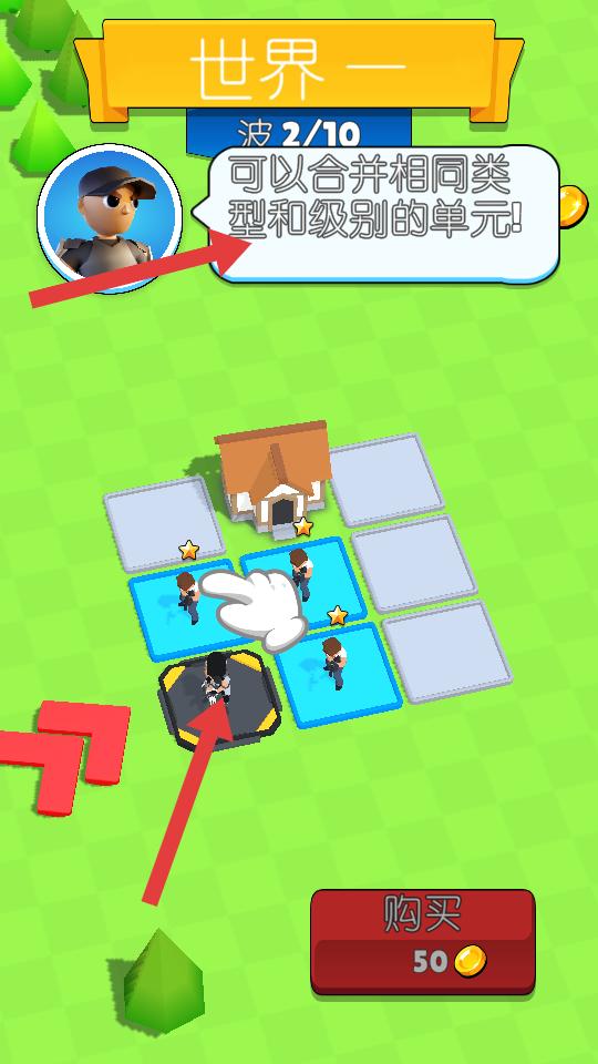 4、戰斗過程中,可合并相同類型和級別的士兵單元,提升士兵戰力,更好地應對后續敵人。