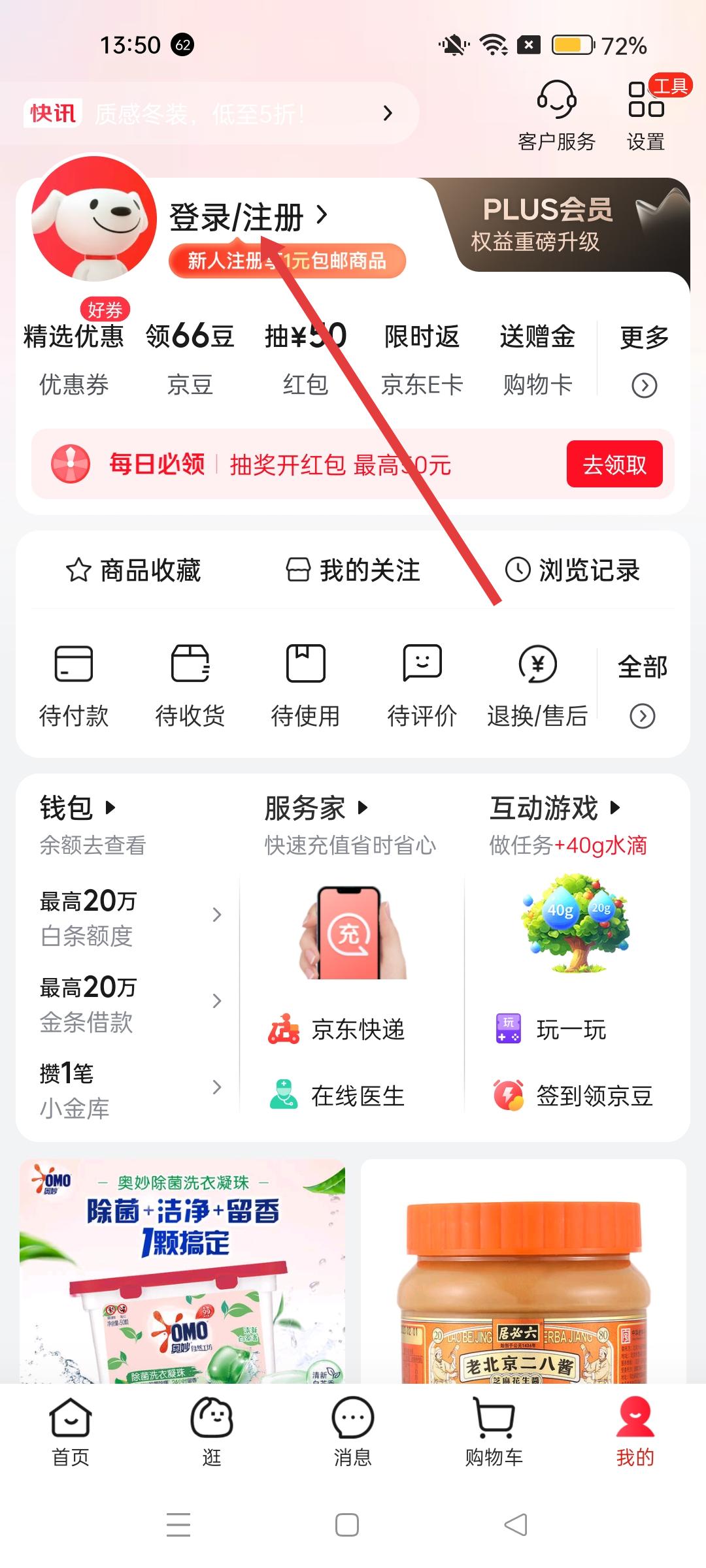 2、個人中心頁面找到登錄、注冊入口,點擊進入登錄或注冊流程,完成賬號登錄準備后續認證。