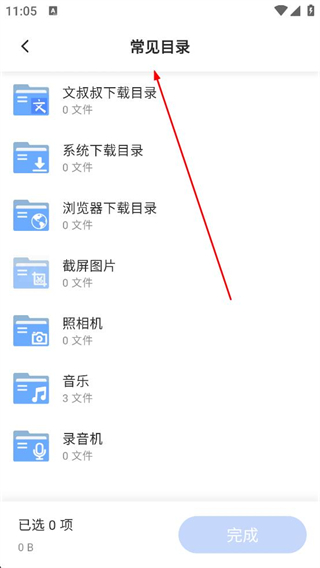 4、在常見目錄頁面選擇目標目錄,查看對應文件情況,選定后點擊完成按鈕,完成文件相關的選擇。