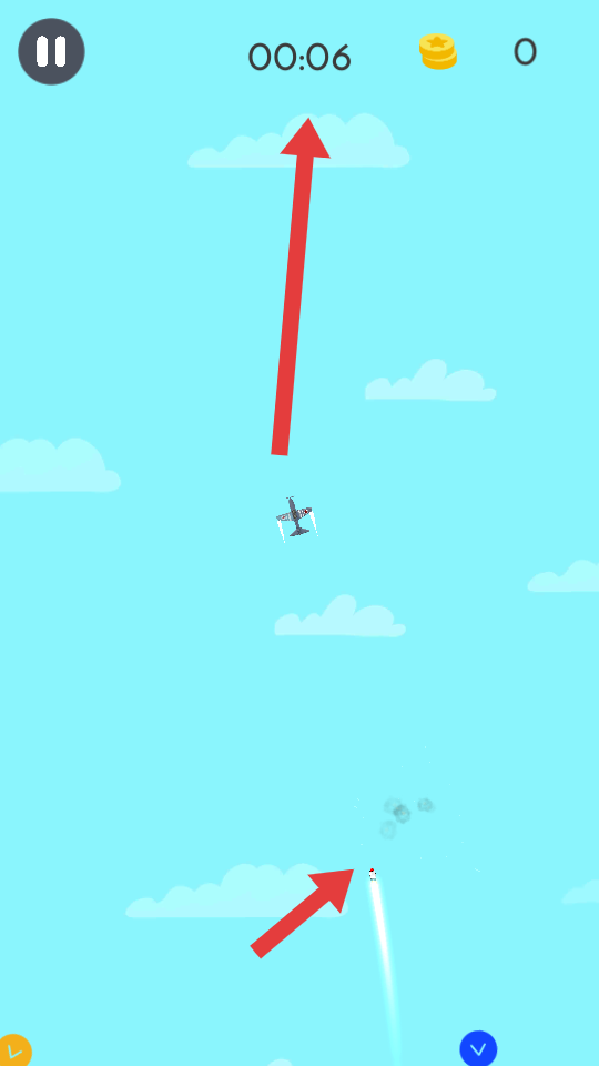 2、在飛行過程,留意空中的金幣,調整飛行軌跡去收集它們,同時還要注意躲避后面的導彈,保持平穩飛行,獲取更多金幣。