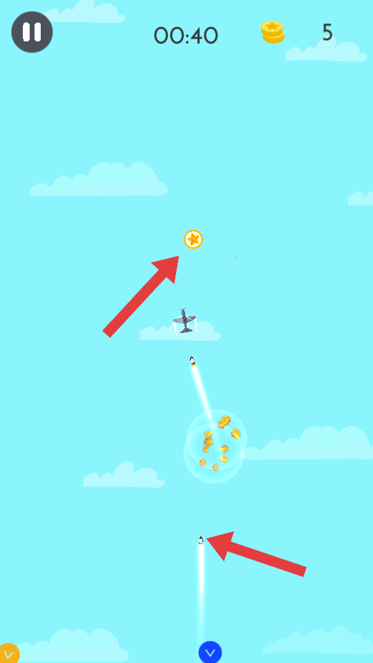 3、持續飛行,會遇到金幣聚集的區域,盡量躲避周圍的導彈,大量收集金幣,提升金幣獲取數量,享受收集樂趣。