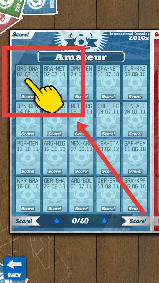 1、進入游戲界面點擊綠色卡片上標有精彩進球2010年代區域,開啟對應年代進球挑戰。
