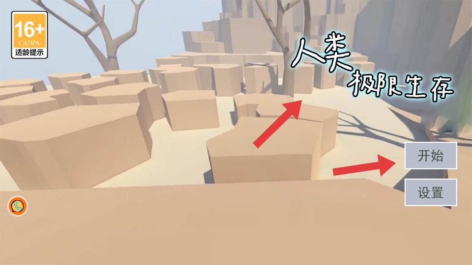 1、進入人類極限生存游戲界面,有開始,設置按鈕,點擊開始,準備進入冒險挑戰。