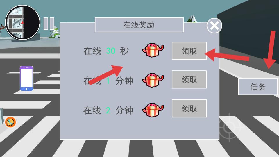 4、游戲過程中可查看任務,根據任務指引行動,同時留意在線獎勵,達到時長可領取獎勵。