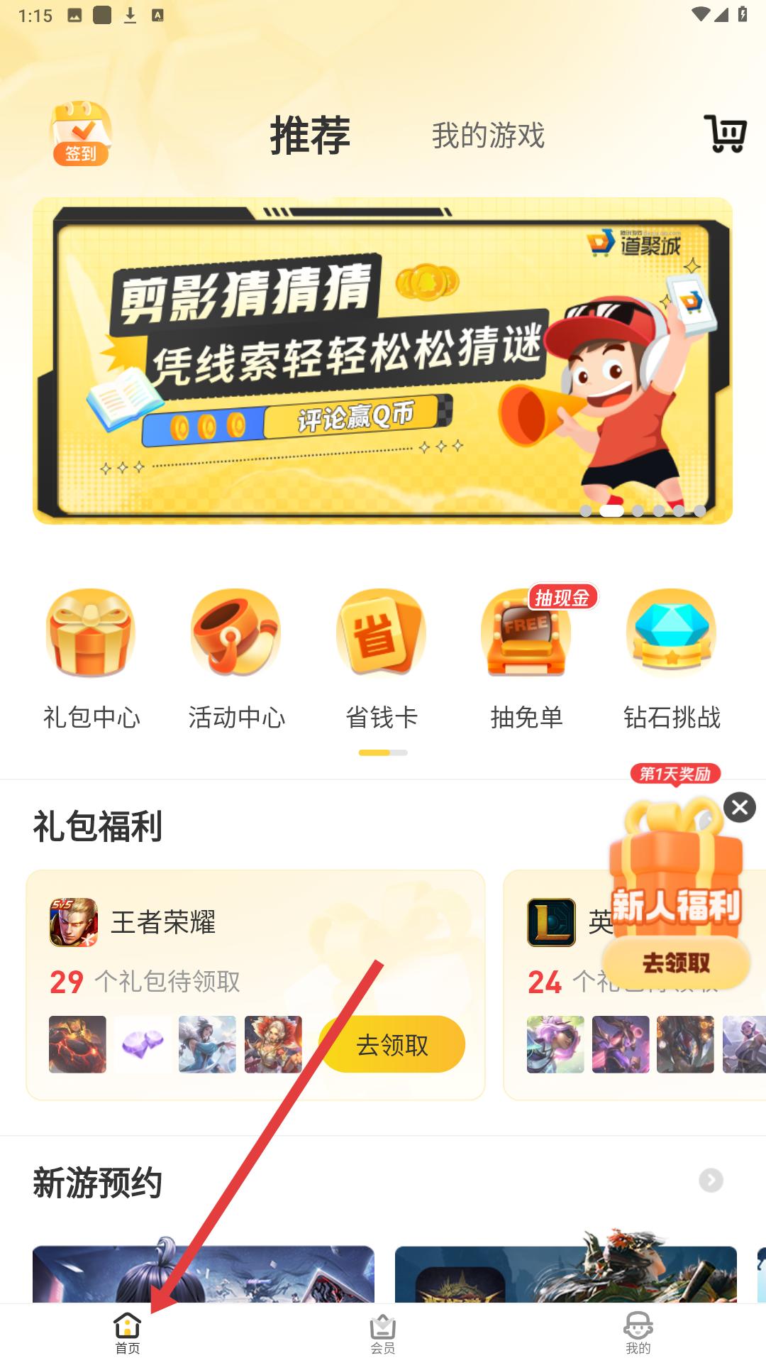 1、道聚城首頁,可查看推薦游戲活動和禮包福利,如王者榮耀有29個禮包待領取,方便玩家獲取游戲福利。