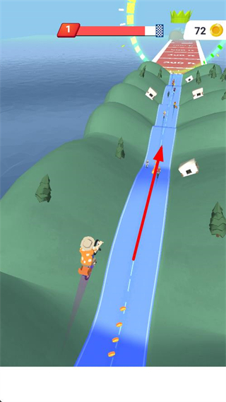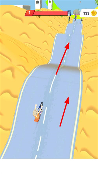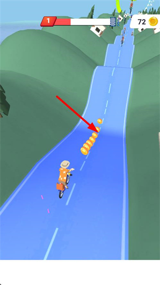1、進入競速關卡后,操控自行車收集道路上的金幣,積累資源的同時保持領先位置,推進比賽進程。