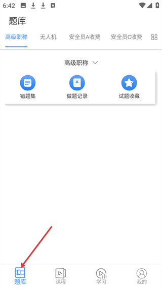 2、題庫頁面有高級職稱、無人機等分類,具備錯題集、做題記錄、試題收藏功能,方便學習時鞏固知識。