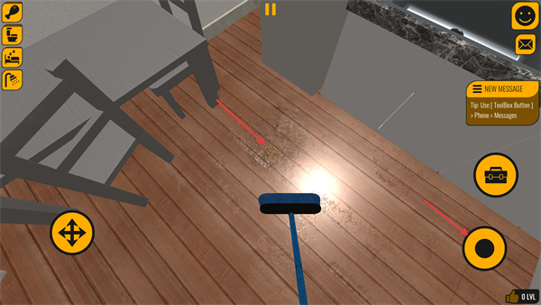 4、當地板出現污漬時,使用拖把工具進行清理,按照屏幕提示拖動拖把即可清除污漬,保持整體環境整潔。