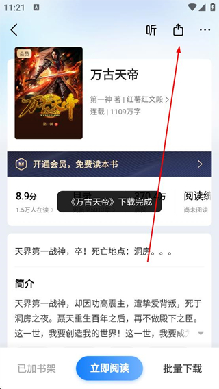 3、如果喜歡這個小說,可以點擊右上角的分享按鈕,分享給好朋友。