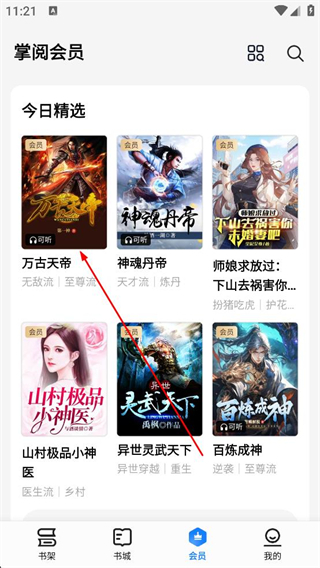 1、打開掌閱軟件首頁,瀏覽今日精選的小說列表,選擇感興趣的小說,進入該小說的詳情頁面查看信息。