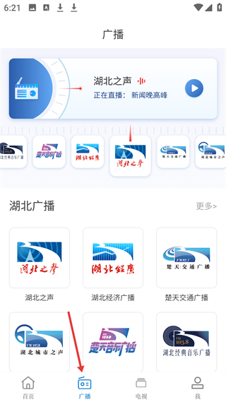 2、廣播板塊有湖北之聲、經濟廣播等,直播新聞晚高峰,提供本地廣播選擇,覆蓋新聞資訊領域。