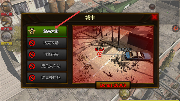2、選擇詹森大街等可進入的區域進行探索,完成區域任務有機會獲得2000美元獎勵,助力玩家后續發展。