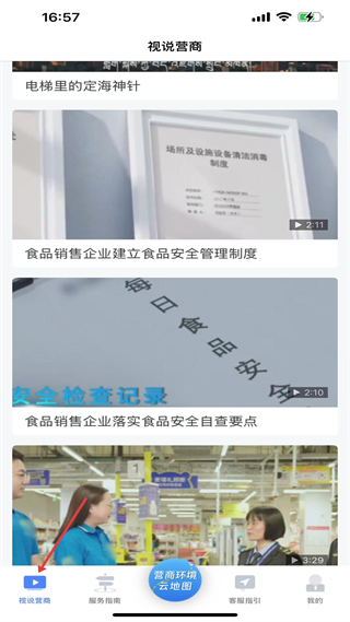 1、視說營商板塊,展示食品銷售企業的安全管理制度、自查要點等視頻內容,助力企業掌握經營合規相關要求。