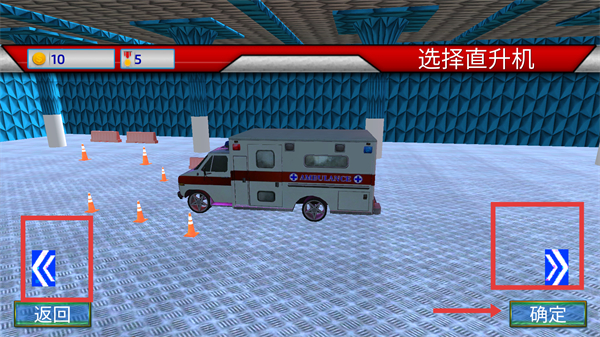 1、進入選擇界面后,若要更換直升機,可點擊左右箭頭切換,選好后點擊確定,若不想選則點擊返回。