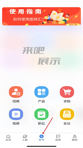 3、發布界面有招.商、產品等功能入口,可發布各類醫療相關信息,助力醫療行業資源對接與信息發布。