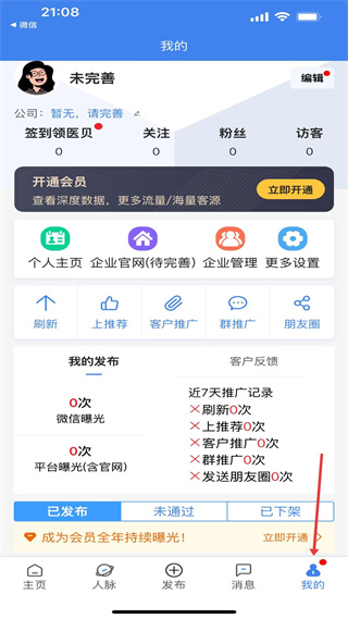 4、我的可完善個人信息,管理關注等,有個人主頁等功能,還可查看發布及客戶反饋,方便管理醫療業務信息。