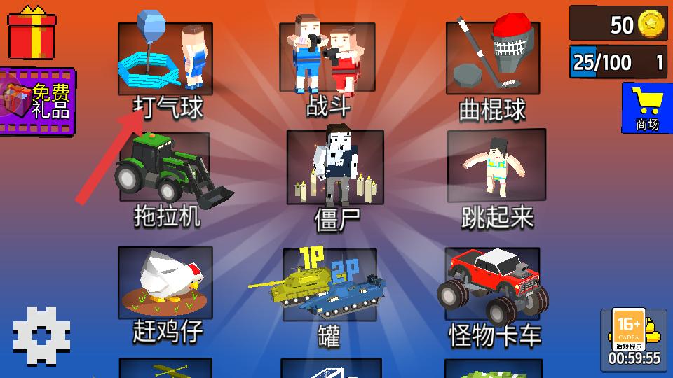 1、進入游戲,看到有打氣球,戰斗等多種游戲選項,可根據喜好選擇想玩的游戲類型,開啟不同的游戲體驗。