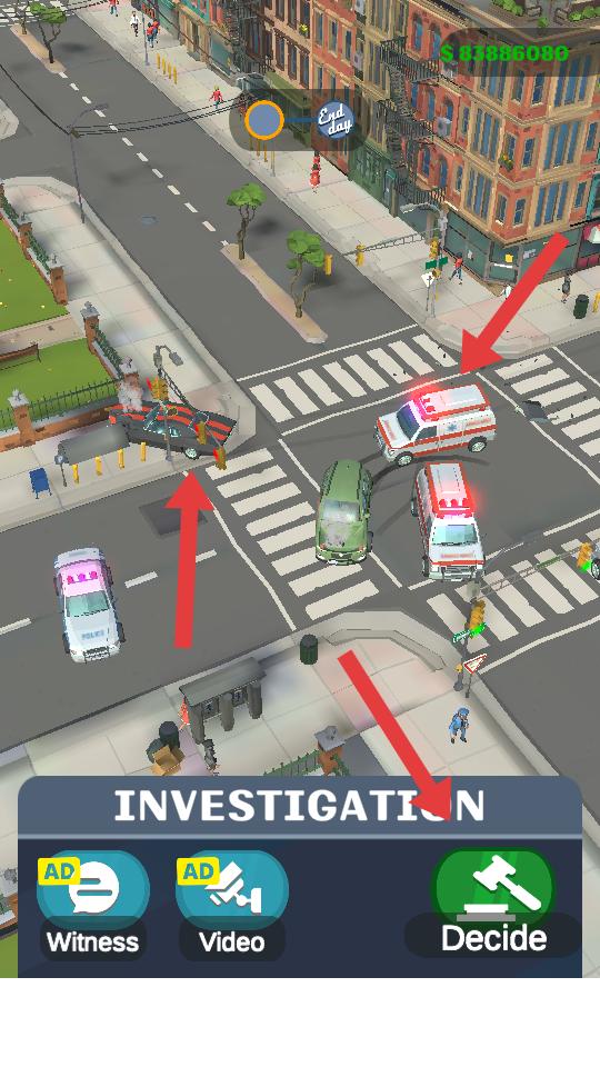 2、遇到交通事故等情況,界面會顯示INVESTIGATION,可借助證人,視頻等方式,調查事故原因。