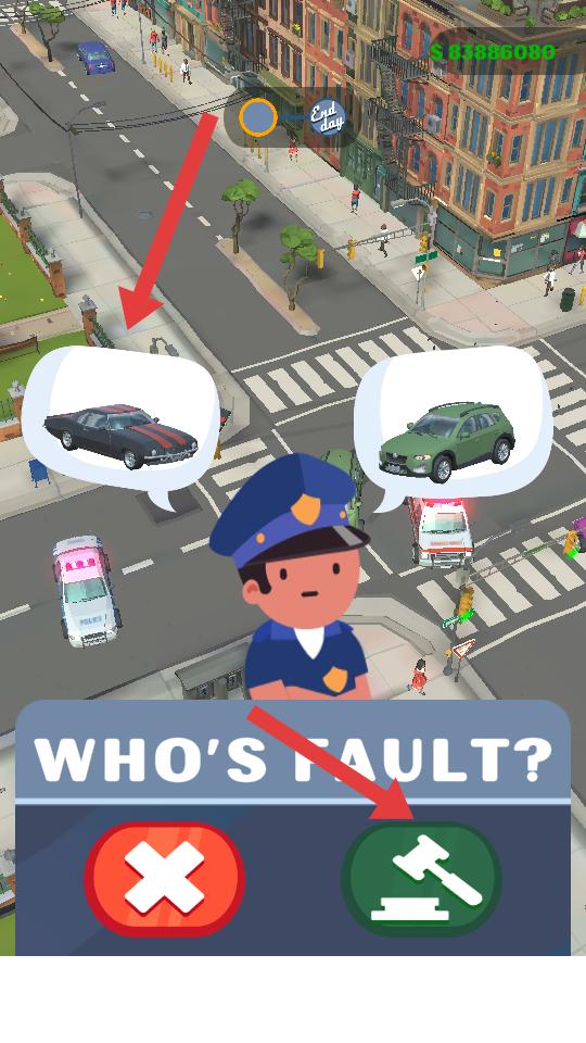 3、調查后面對WHO IS FAULT的問題,根據判斷,點擊相應按鈕,判定事故責任方。