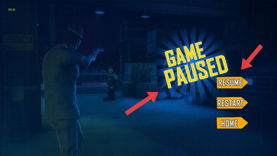 4、若游戲暫停,會出現GAME PAUSED提示,右側有RESUME,RESTART,HOME按鈕,可選擇繼續游戲,重新開始或返回主界面。