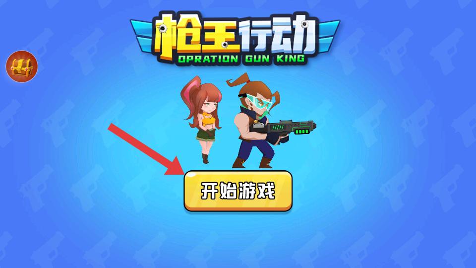 1、進入游戲,看到槍王行動的標題界面,點擊開始游戲,就能開啟第一關的挑戰,準備到關卡中展開冒險。