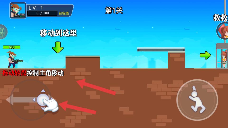 2、第1關場景里,拖動輪盤控制主角移動,按照提示移動到指定位置,同時留意周圍環境,為后續行動做準備。