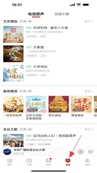 3、電視板塊含文史精品、曲苑精選等,如大宗詞壇,提供文化類視聽內容,助力用戶學習文化知識。