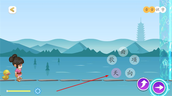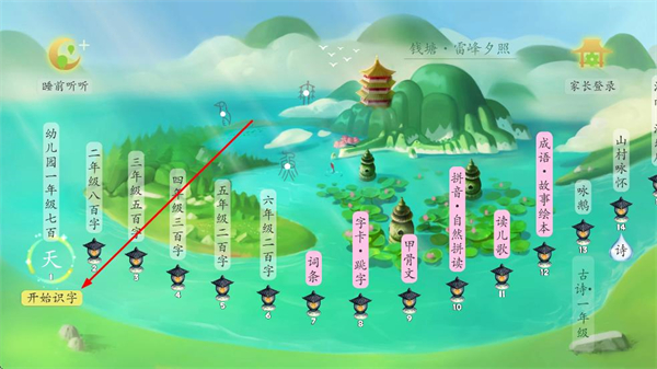 3、在識字場景頁面中選擇要學習的漢字,點擊對應的漢字選項,進入該漢字的詳細學習環節。