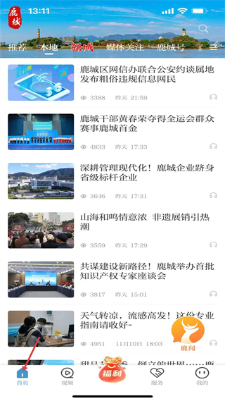 1、掌上鹿城APP首頁,頭條,本地頻道呈現鹿城大小事,像智能降溫系統這類資訊,點擊可看詳情,快速知曉同城動態。