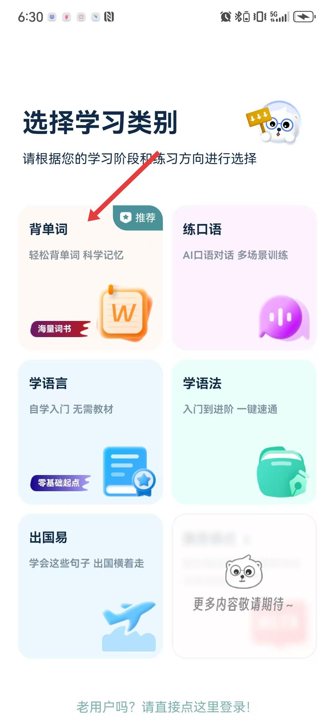 1、在萊特俄語學習背單詞的學習類別選擇頁面,點擊背單詞選項,進入背單詞功能板塊,該板塊有海量詞書,可開啟俄語單詞背誦之旅。