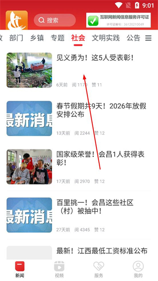 1、打開獨好會昌app,選擇一個自己感興趣的新聞事件點擊進去閱讀互動。