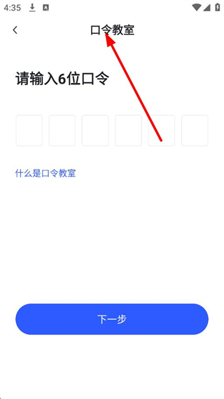 2、可進入口令教室,輸入6位口令后點擊下一步,進入對應的教室場景,參與相關教育活動。
