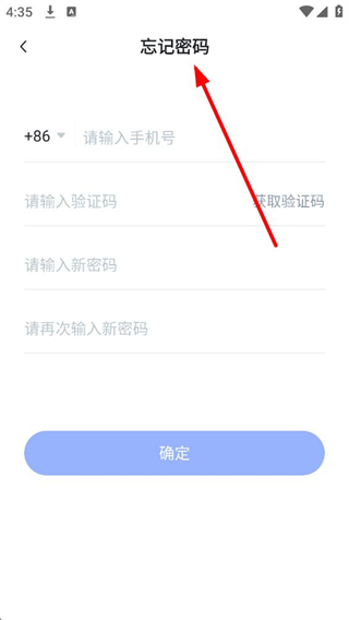4、若忘記密碼,可輸入手機號,獲取驗證碼,設置新密碼并再次確認,點擊確定完成密碼重置,以便繼續登錄平臺。