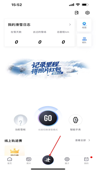 3、進入滑雪模式,含滑雪日志、里程記錄功能,可切換滑雪模式并生成3D軌跡,提供軌跡賽等互動,輔助記錄滑雪數據。
