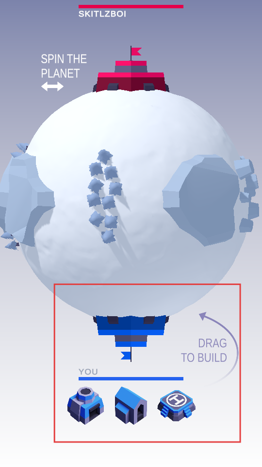 2、拖動下方的防御塔,布置到星球合適位置,同時可左右滑動旋轉星球,調整防御布局,抵御敵人進攻。