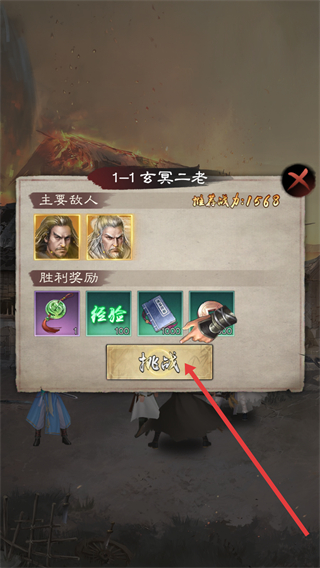 1、可挑戰關卡,如玄冥二老,查看主要敵人和勝利獎勵,點擊挑戰進入刺激的戰斗。