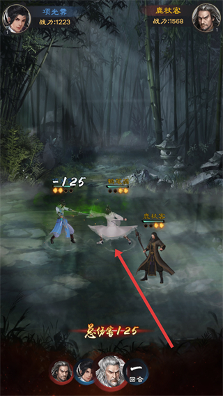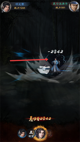 4、可與不同敵人如昆侖派弟子戰斗,使用技能攻擊敵人,查看總傷害,贏得戰斗提升戰力。