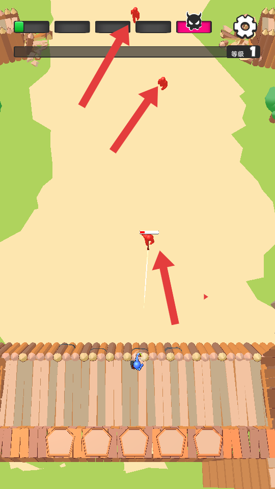 2、敵人開始出現,操控角色攻擊,發射攻擊物擊中敵人,阻止敵人前進,同時注意自身的攻擊節奏和敵人的動向。