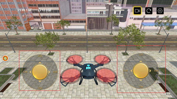 4、進入飛行場景后通過屏幕上的虛擬搖桿等操控元素,控制無人機的飛行方向、高度和速度等,完成相應任務。