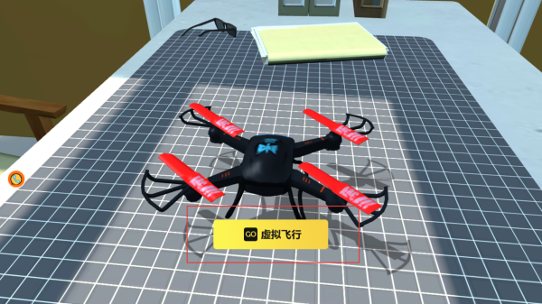 1、玩家下載游戲之后在游戲界面中點擊虛擬飛行按鈕,進入無人機的飛行操控場景,準備操控無人機進行飛行體驗。