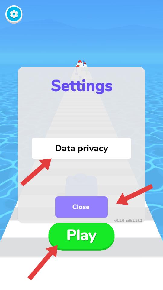 1、進入游戲,會看到Settings界面,有Data privacy和Close等選項,也能直接點擊Play,開啟方塊跑酷的挑戰。