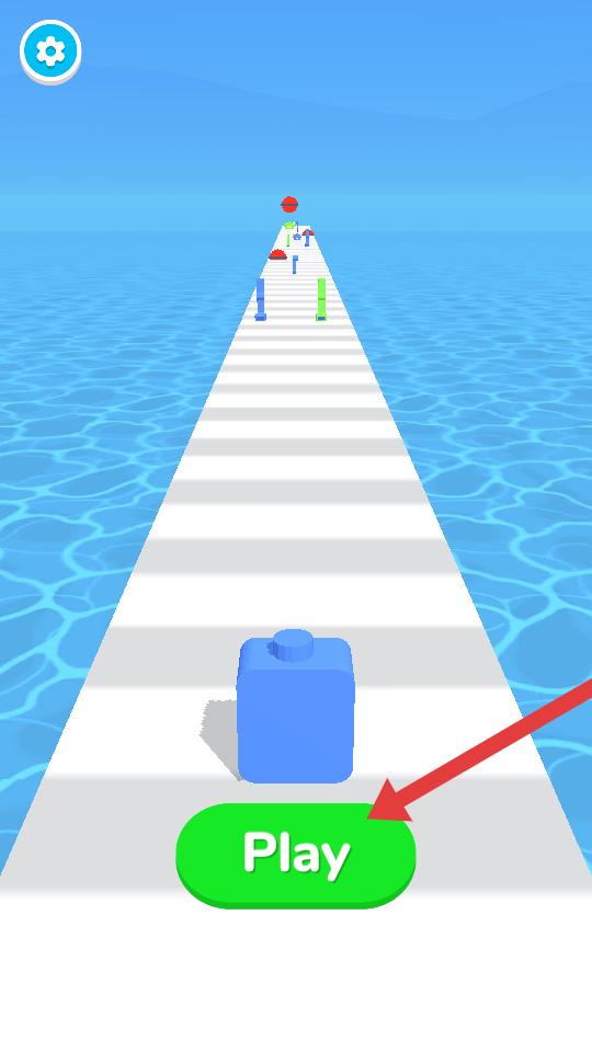 2、在跑酷準備界面,有藍色方塊和Play按鈕,點擊Play,藍色方塊就會在水上的跑道上開始跑酷,迎接關卡挑戰。