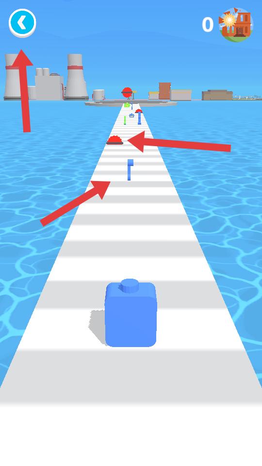 3、跑酷過程中,跑道上有各種障礙物和可收集的物品,操控方塊躲避障礙物,收集物品,向終點前進。