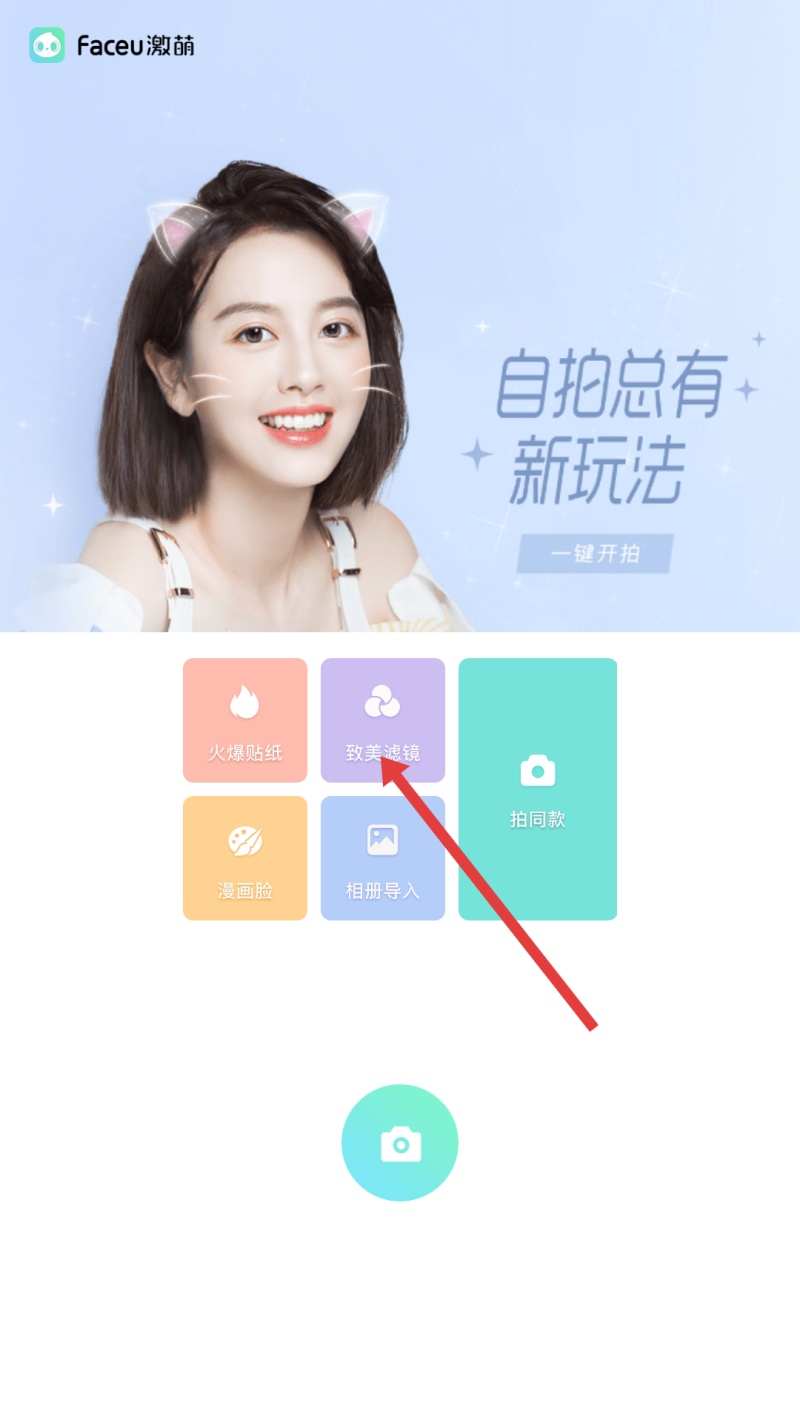 1、進入應用可看到致美濾鏡功能入口,點擊后可進入濾鏡選擇界面,為自拍選擇不同風格的濾鏡,提升自拍的視覺效果。