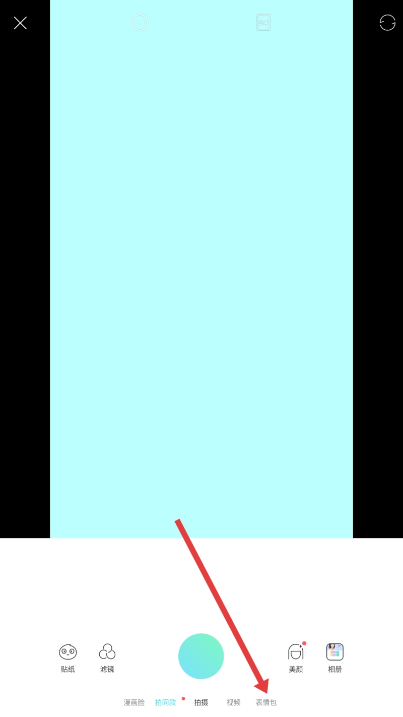 2、拍攝界面,可選擇表情包功能,為自拍添加有趣的表情包元素,增加自拍的趣味性和創意性。