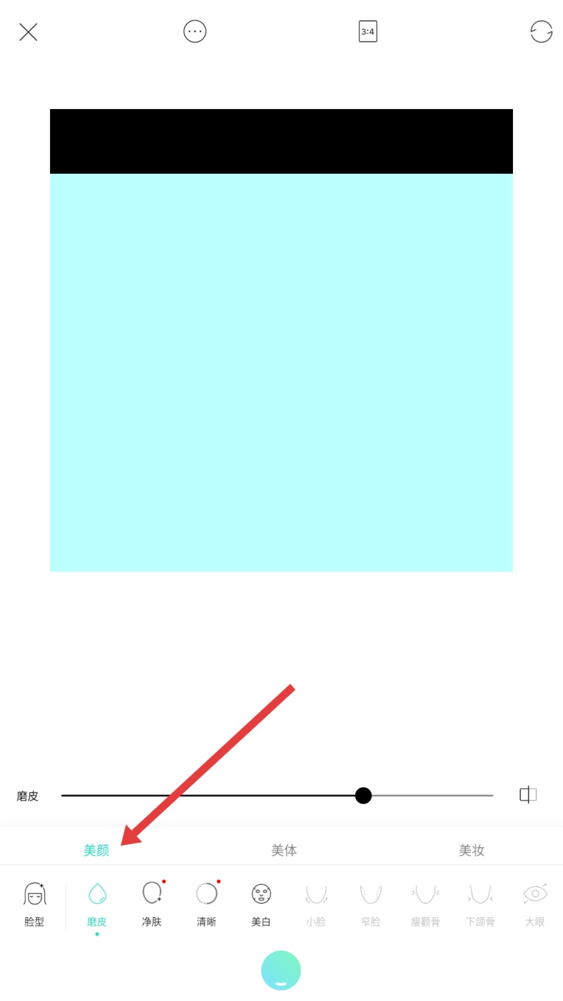 4、美顏界面,可對磨皮、凈膚等美顏參數進行調整,還可選擇臉型、美體、美妝等功能,打造更精致的自拍效果。