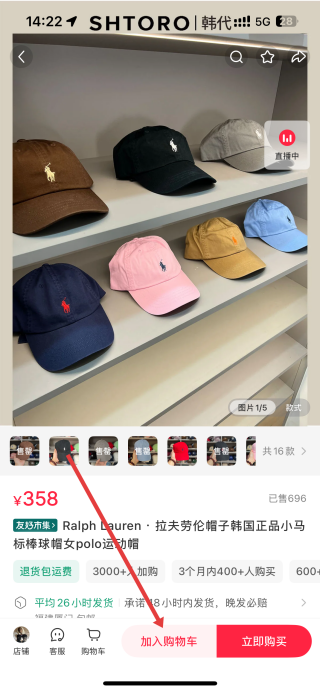2、進入商品詳情頁面,可看到商品展示、價格等信息,若要購買,點擊加入購物車。