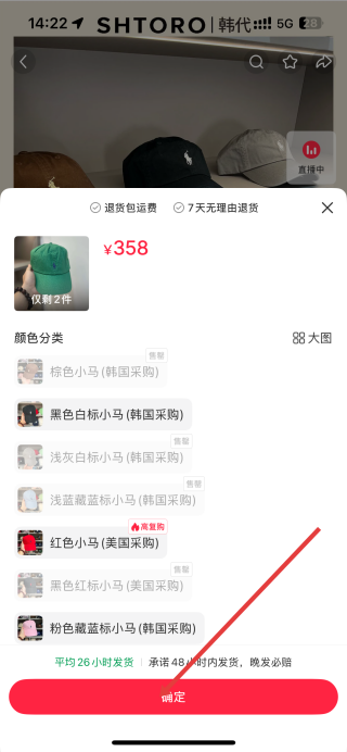 3、點擊加入購物車后,選擇商品的顏色分類等規格,選好后點擊確定,將商品加入購物車。