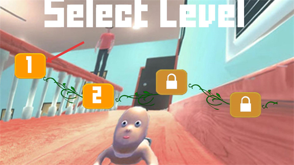 2、進入關卡選擇界面,能看到標有數字和帶鎖的按鈕,選擇標著1的已解鎖按鈕,就可以開始第一關游戲。