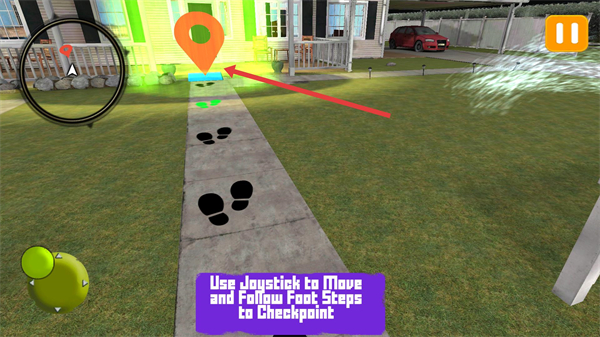 4、借助左下角的操縱桿來移動角色,同時順著地面上的腳印前行,一路朝著checkpoint的位置進發,到達即通關第一關。